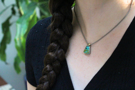 A final petal in this series. Sonoran Gold turquoise set in sterling silver and finished with a brass accent.